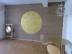 Ein Gruppenraum (30 qm) mit gewachstem Holzfußboden und Lehmputz.